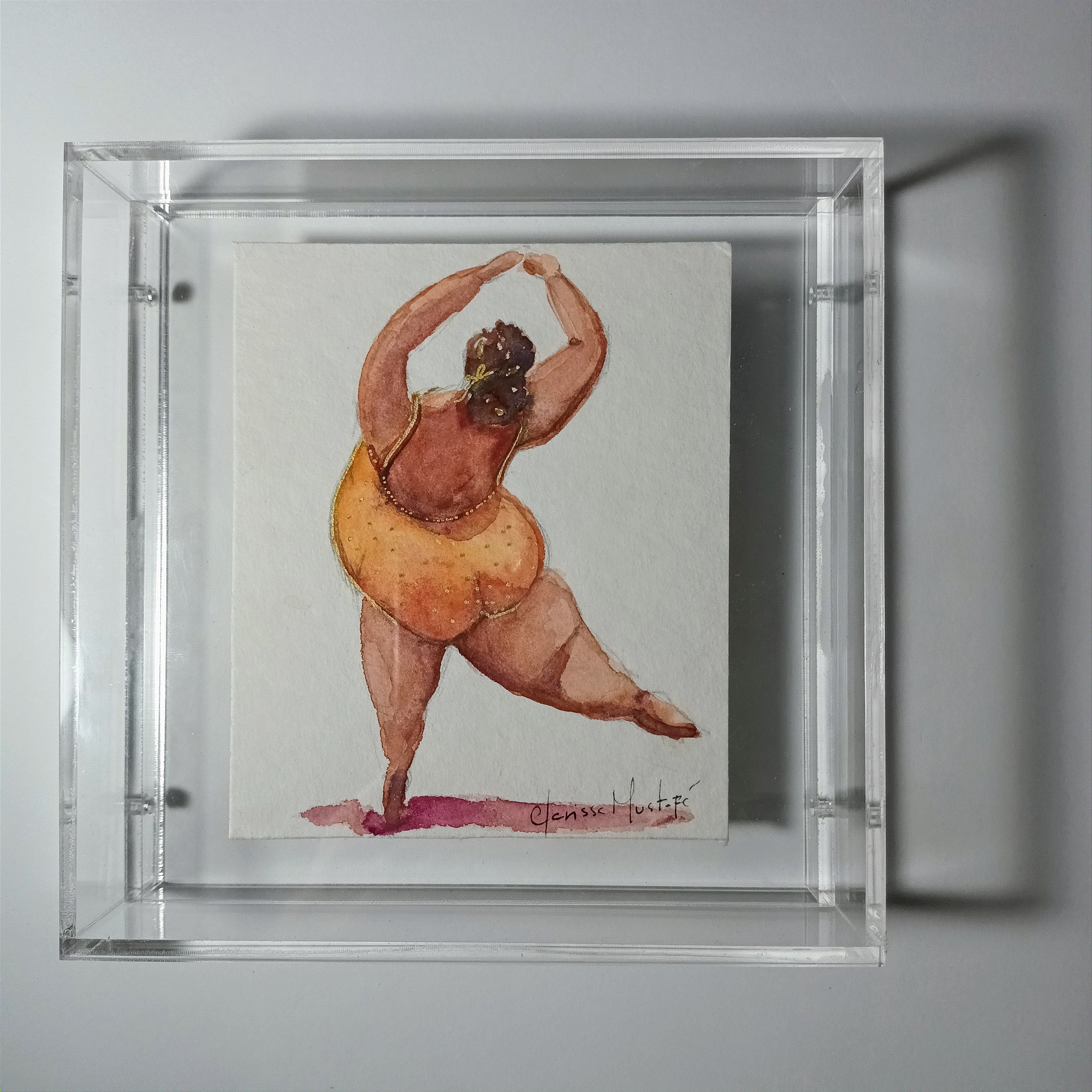 Arte impressa em papel vergê 220g/m² em moldura de acrílico tipo caixa 15x15cm